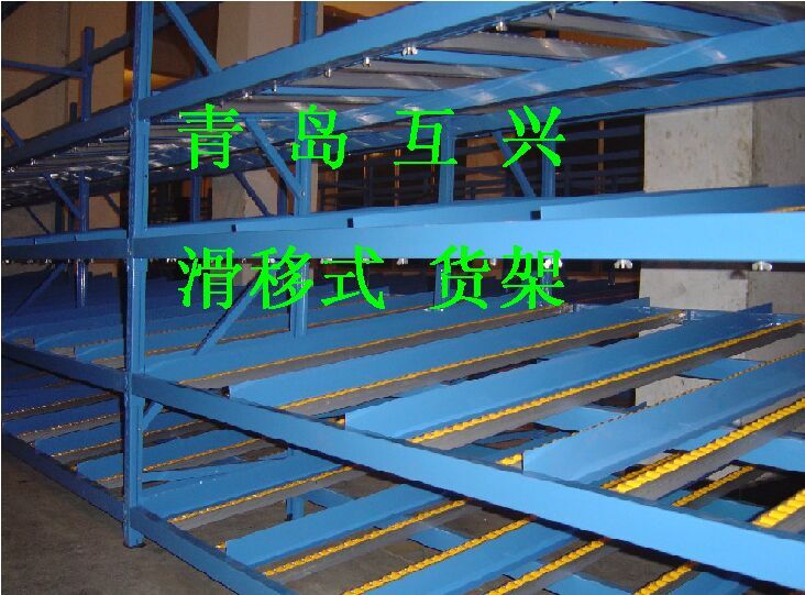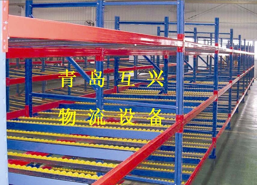 青島互興物流設備生產的流利式貨架又成為滑移式貨架通常由中型橫梁式貨架演變而成,貨架每層前后橫梁之間設置滾輪式鋁合金或鈑金式流力條,呈一定坡度(30左右)放置。貨物通常為紙包裝或將貨物放于塑料周轉箱內利用其自重實現貨物的流動和先進先出,貨物由小車進行運送,人工存取,存取方便,滑移貨架單元貨架每層載重量通常在1000KG以內,貨架高度在2.5米以內。適于裝配線兩側的工序轉換、配送中心的揀選作業等場所,可配以電子標簽實現貨物的信息貨管理.高密度儲存,節省空間,倉儲利用率較普通貨架提高60%以上。提高物流效率,節約時間,物品存取效率是普通貨架的10倍。