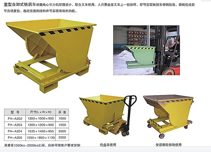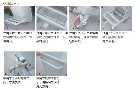2、鐵屑車含有自鎖裝置,可以防止運輸過程中出現(xiàn)翻轉情況;